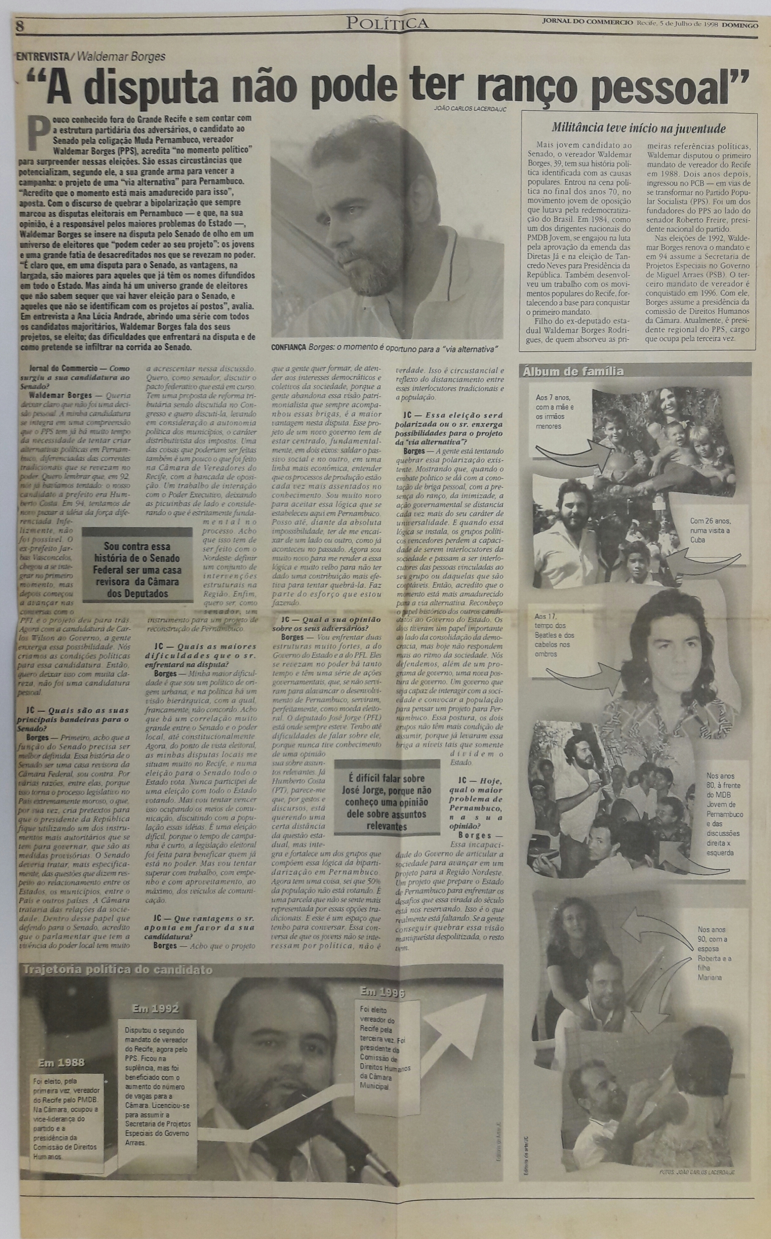 1998-07-05 – JC – Política – A disputa não pode ter ranço pessoal