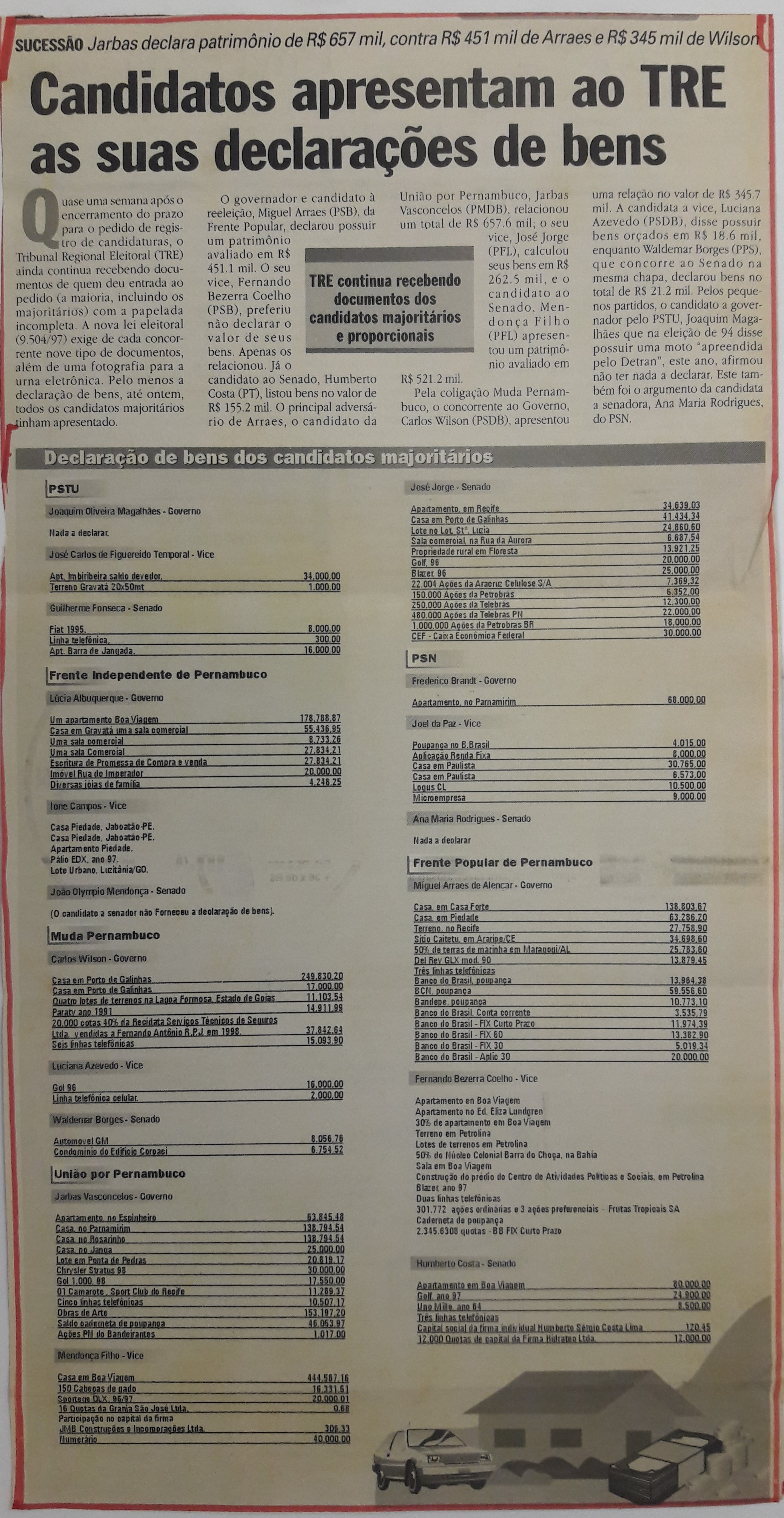 1998-07-11 – JC – Política – Candidatos apresentam ao TRE as suas declarações de bens